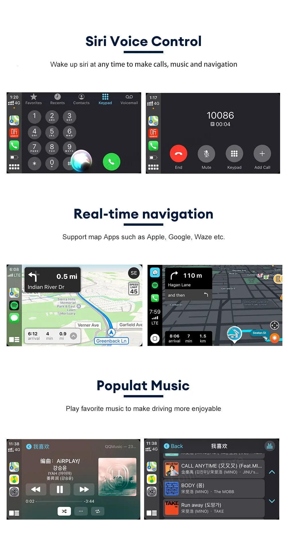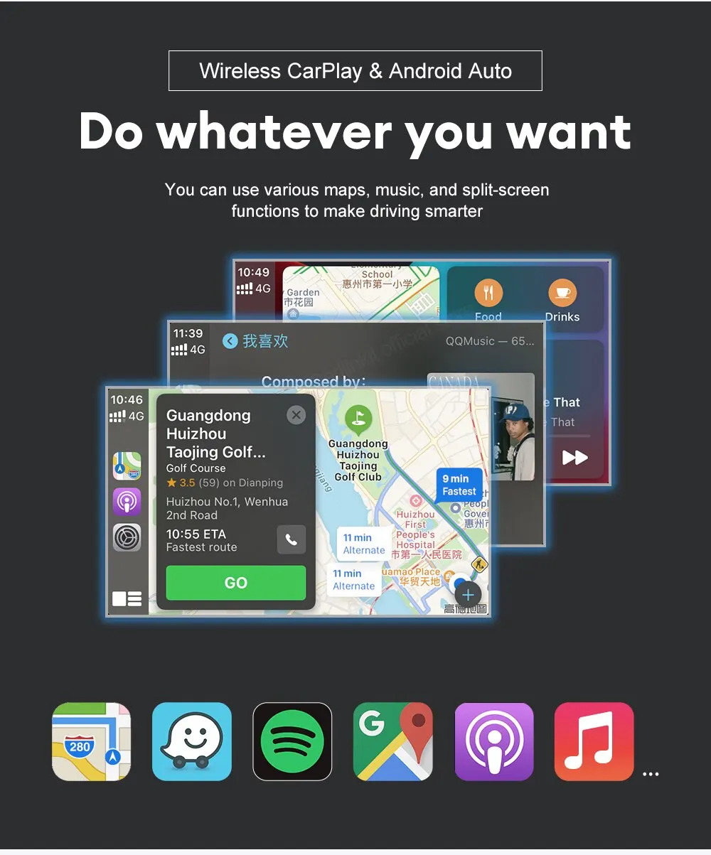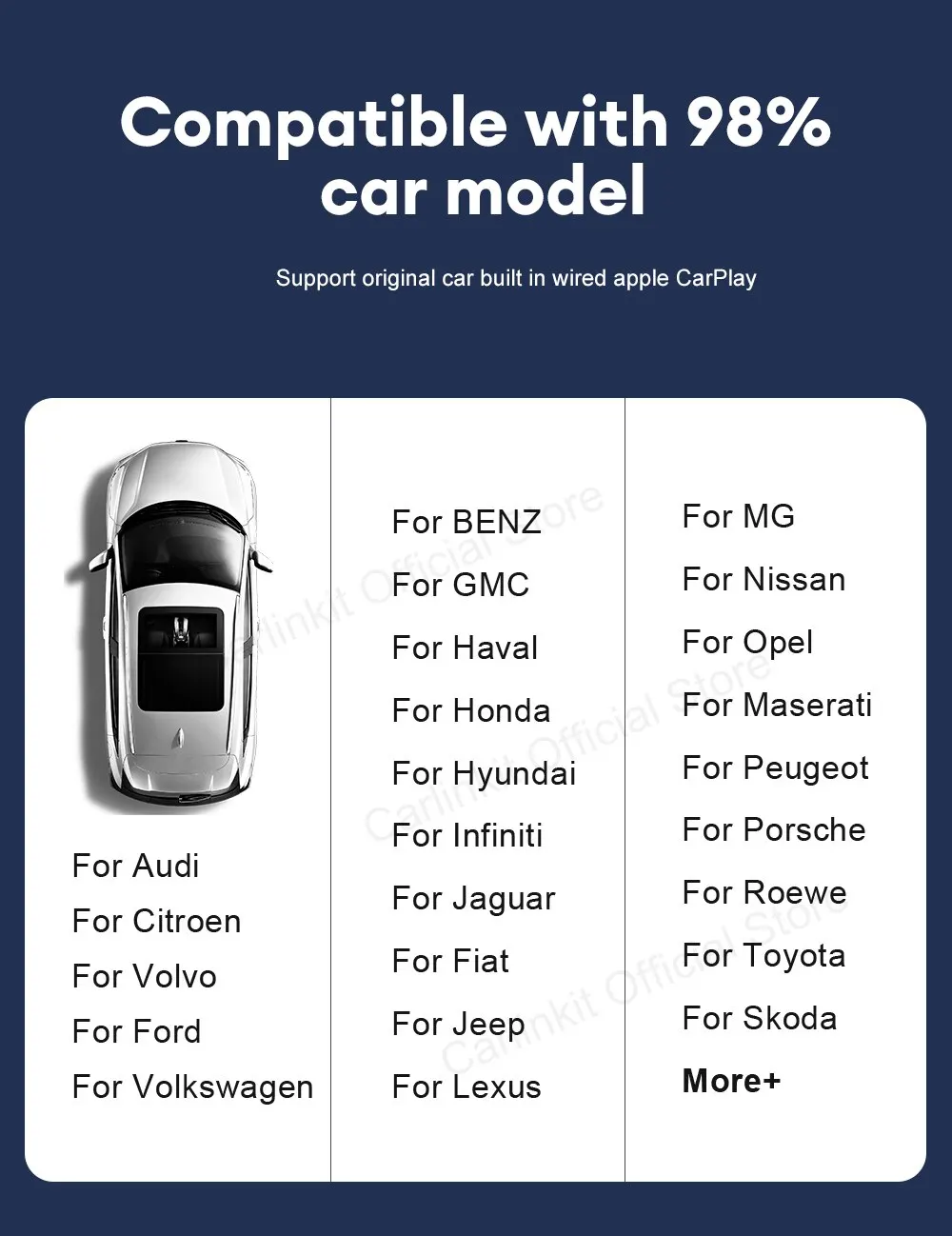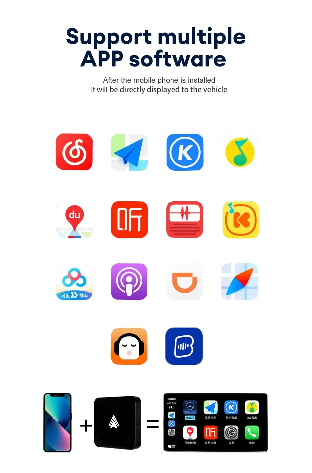 يدعم جميع السيارات ، ومناسبة لأصحاب السيارات التي لا تدعم Carplay اللاسلكي.