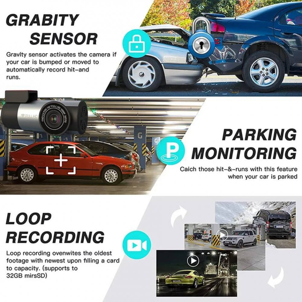 ✔4. مستشعر الجاذبية: عندما يتم الكشف عن الكبح المفاجئ أو الاصطدام ، يتم قفل الفيديو الحالي على الفور لتجنب الكتابة الزائدة على الملفات الهامة أثناء التسجيل المتكرر.